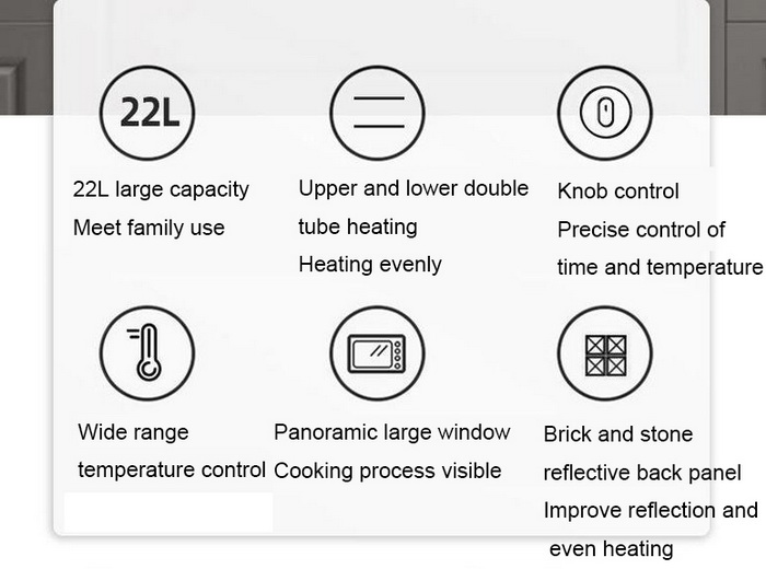 Function: Bake, TOAST, Warm, Timer Function, Interior Oven Light