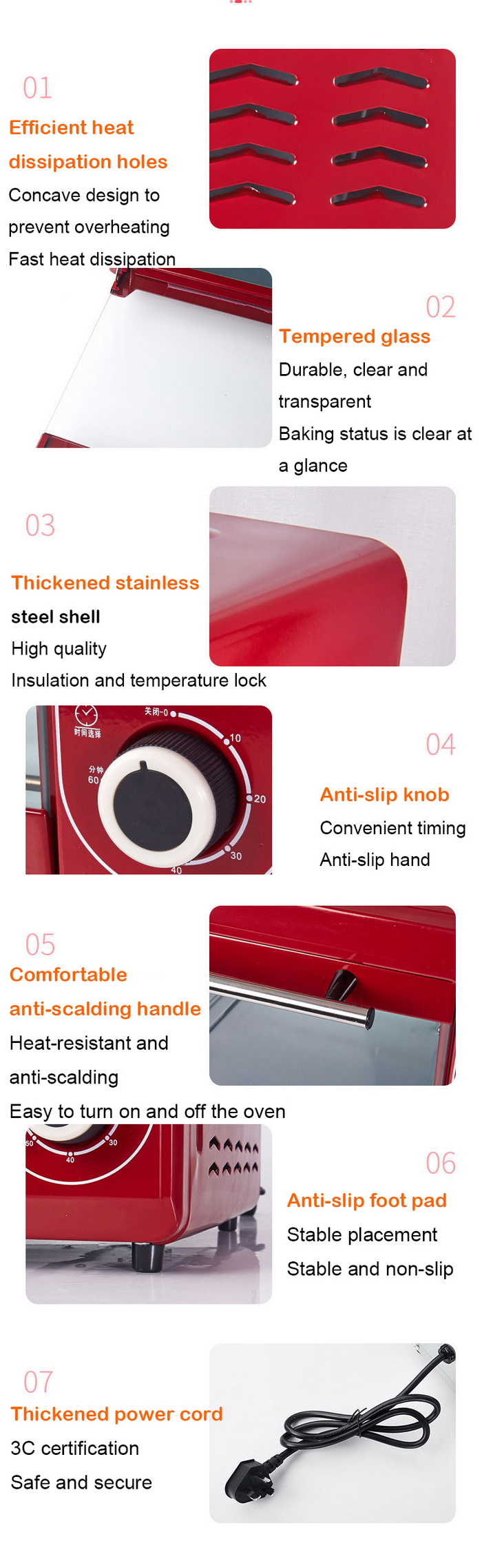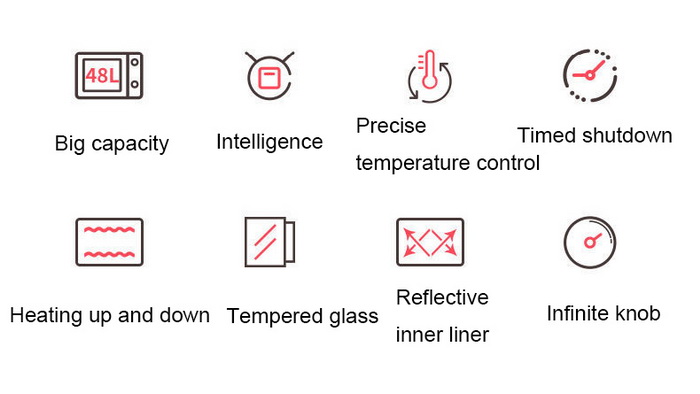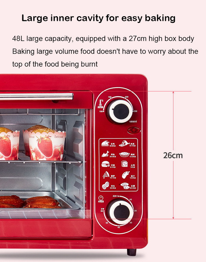 1. Electric oven with 48L capacity, suitable for big families of 6-8 people;