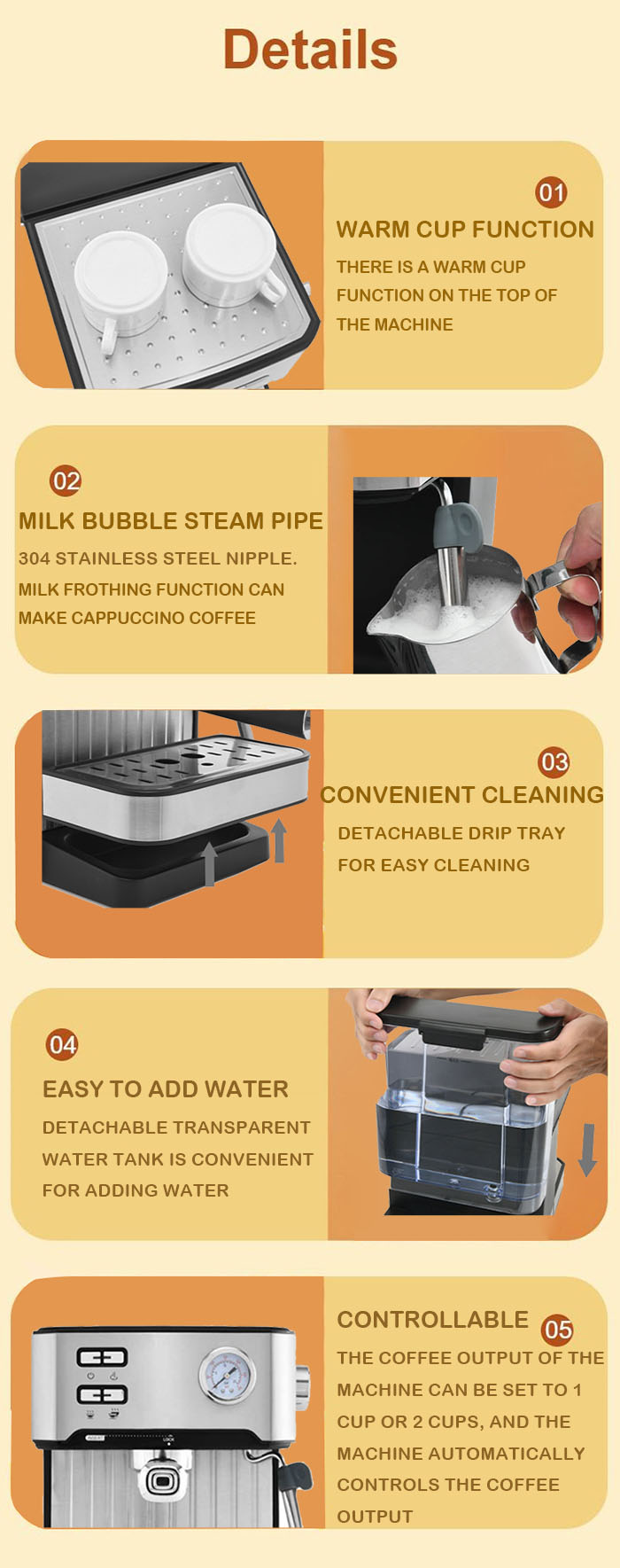 5.Detachable Frothing Nozzle & Drip Tray