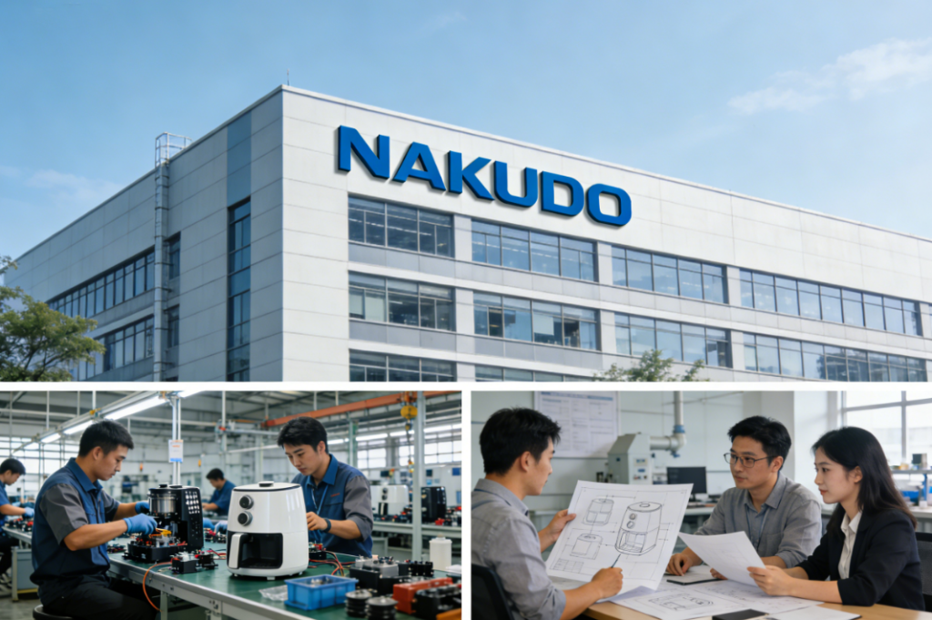 Guangzhou NAKUDO Technology Co.,Ltd is a professional research and development company belongs to Myling Group,focus on home use electronic devices, including air fryers,blenders,rice cooker,ovens,etc.And we own Topbelle,NAKUDO brands.Our company have have different production lines in Guangzhou,Shenzhen,Zhongshan.We have been manufacturing equipments for some top brands from Germany,Spain, Korea and United States with the term of OEM since the year of 2007. Our company has got independent import and export rights. Thus, we can distribute several kinds of equipment to clients globally. Some of our products have got European CE,US Ul,ISO and other certifications.