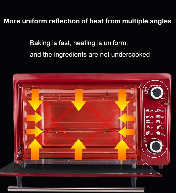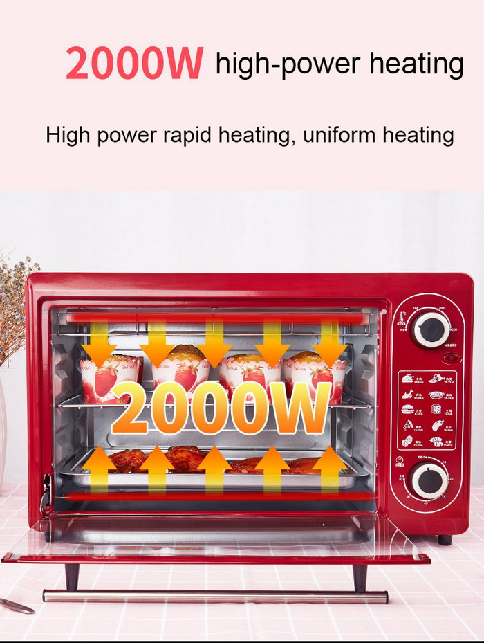 1. Electric oven with 48L capacity, suitable for big families of 6-8 people;