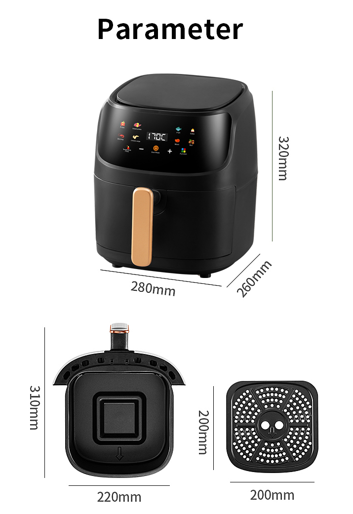 1.8 large function preset menu, real large capacity of 5 liters, whole chicken can be roasted 3 pounds, chicken wings can be roasted 12.pcs