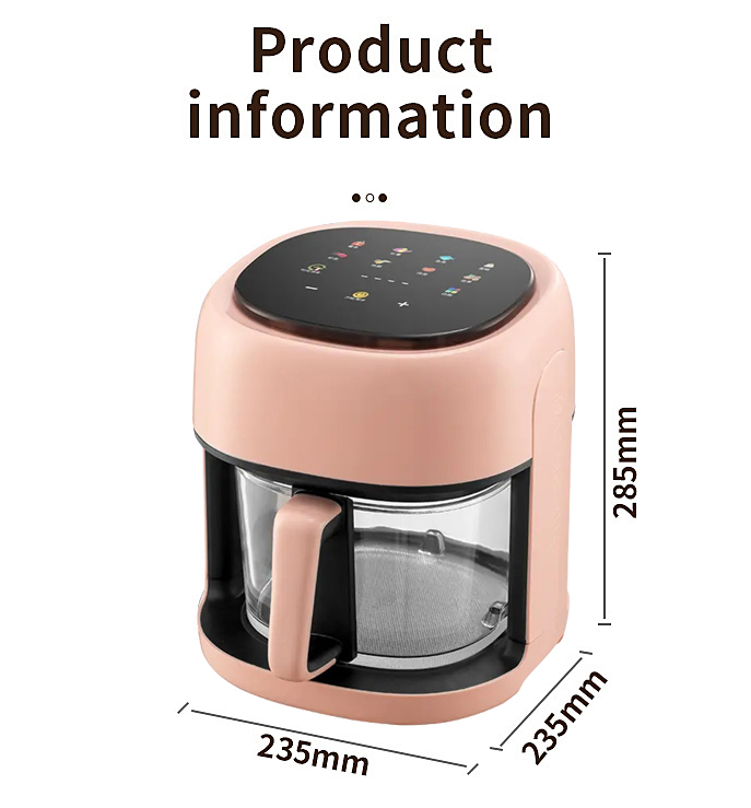 3.Capacity :4.5L large capacity to meet more delicious requirements, visible food contact with glass fried blue easy to clean and healthier.